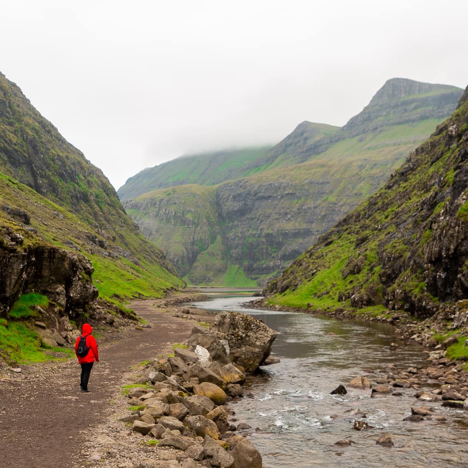 Nadat we het kleine dorpje verkenden, trokken we via een asfaltweg en grindpad richting de zee. Het was onze eerste echte wandeling op de Faeröer en gemakkelijk beginnen leek ons niet verkeerd. Het water leek heel rustig te zijn en vrij laag te staan. De bedding van de rivier was zeer breed. Een local stond te vissen met z’n zoon, geen idee of ze succesvol waren. Wij beschouwen onze eerste wandeling wel zeker als geslaagd!