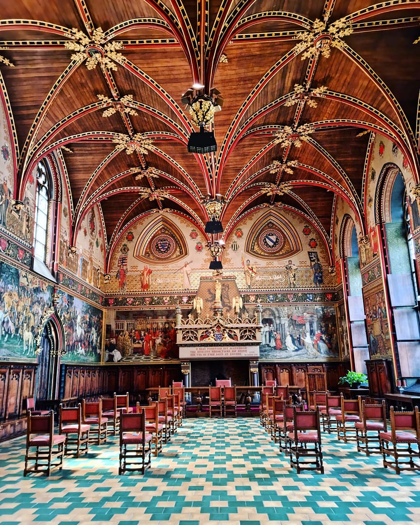Beide gebouwen liggen naast elkaar en zijn dus gemakkelijk samen te bezoeken. Beginnen deden we met het Stadhuis. Daar is de grote blikvanger de oude Gotische zaal met imposante gewelven. Naast de Gotische zaal was er nog een zaaltje met meer info over het verleden van Brugge, maar het grootste deel van onze aandacht ging toch naar de Gotische zaal. Via een QR code die je kan scannen aan de ingang krijg je nog wat extra info