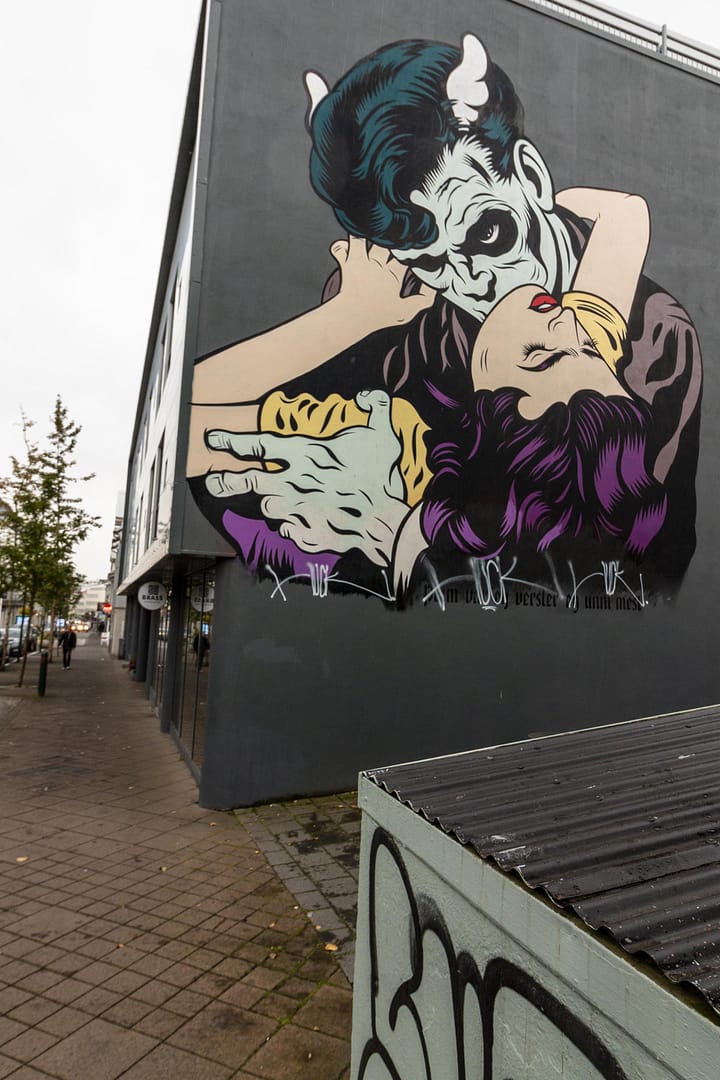 Uiteraard is er meer dan gewoon eten en drinken. Het voordeel is dat je Reykjavik perfect te voet te bezoeken is. De stad en het centrum zijn op zich vrij klein en met brede voetpaden en stukken autovrije zone, is het wel gezellig wandelen. Wat meteen opvalt is de grote hoeveelheid Street art die her en der verspreid is. Het maakt de stad hip en trendy en automatisch ga je op zoek naar andere (grote werken).