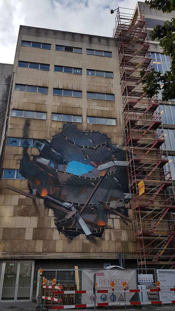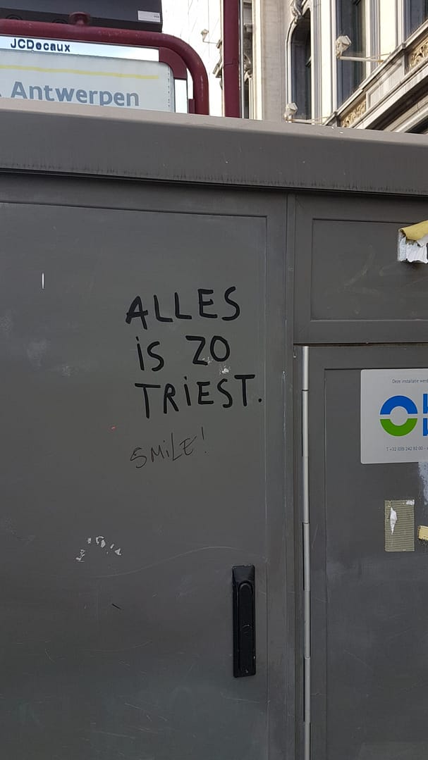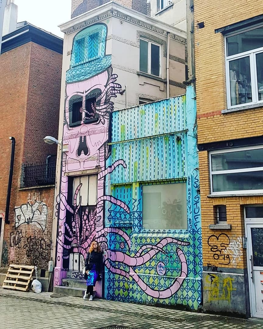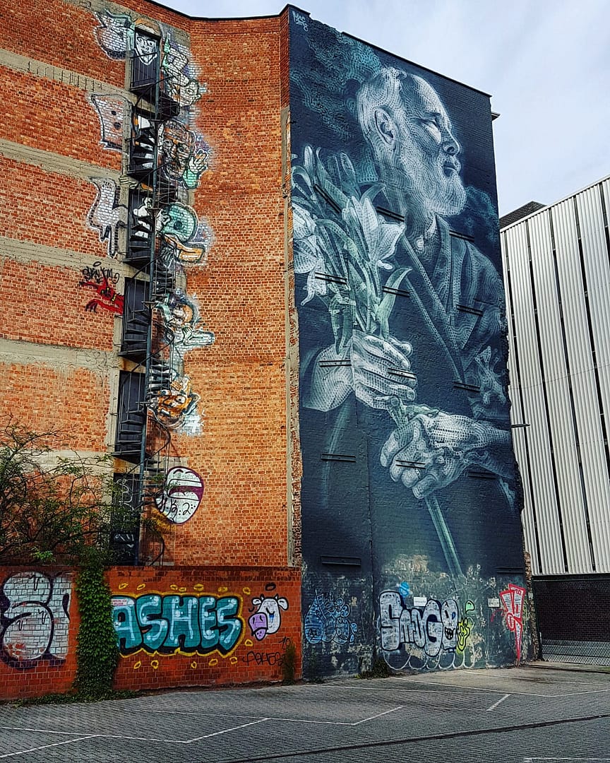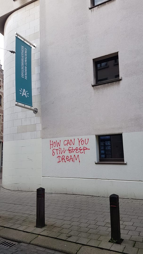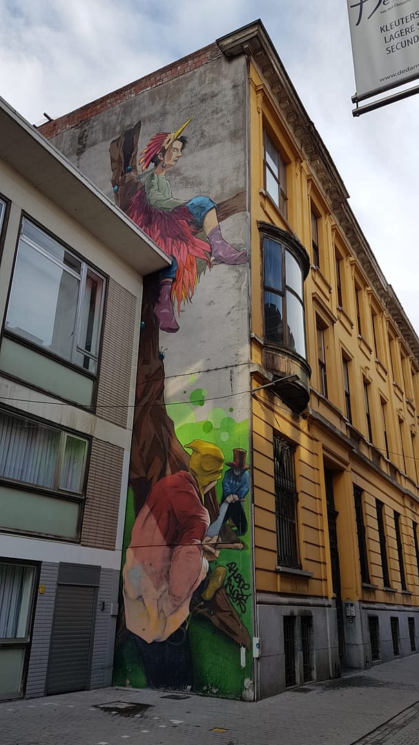 De wandeling bracht ons door het centrum van Antwerpen en bevatte een heel aantal diverse werken. Sommige plekjes waren goed verstopt, bij anderen werden we dan weer onder de voet gelopen. Eéntje vonden we helaas niet terug. Hieronder alvast een overzicht van wat de street art in Antwerpen ons te bieden had.