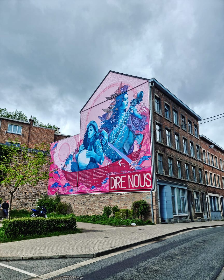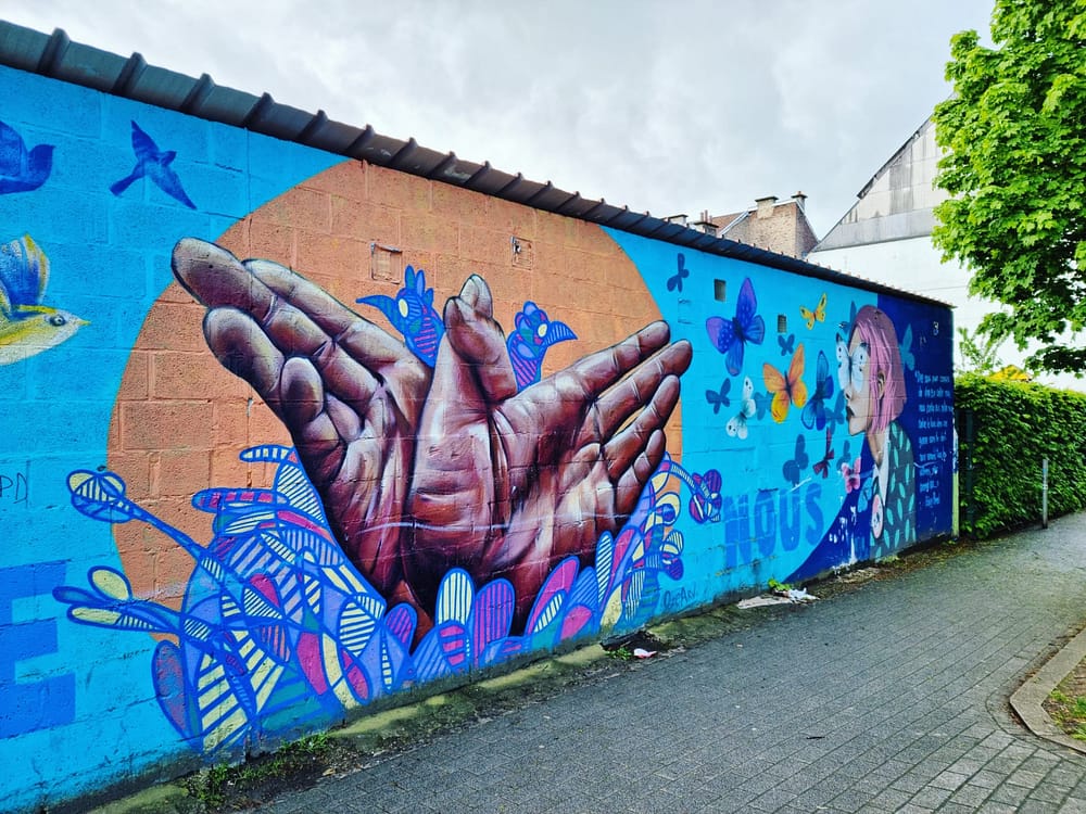 Toch is Verviers één van de mooiste Waalse steden. De oude industriestad heeft echt prachtige gebouwen die je met een korte stadswandeling al snel opmerkt. De afgelopen jaren zijn daar ook kleurrijke graffiti-werken aan toegevoegd, die samen een streetart parcours vormen. Het parcours bestaat uit enkele werken in de reeks ‘Dire Nous’ en enkele losse werken. De ‘Dire Nous’ reeks is gebaseerd op het gelijknamige essay van Edwy Plenel en viert samenleven, verdraagzaamheid en multiculturalisme.