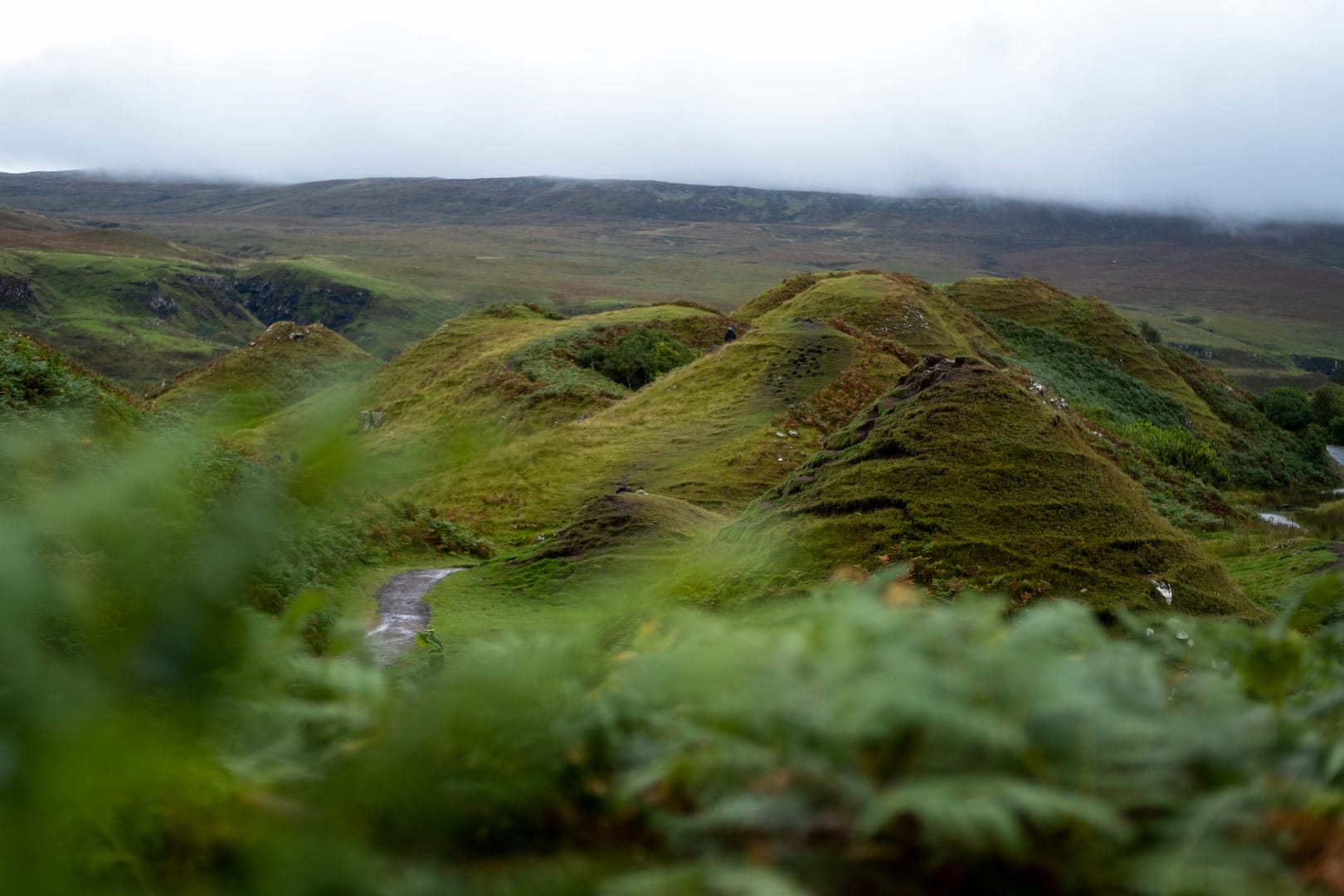 - Fairy Glen: ofte een sprookjesachtige vallei. Voldoende parking, betrekkelijk korte wandeling en in ons geval: helaas veel nevel.
