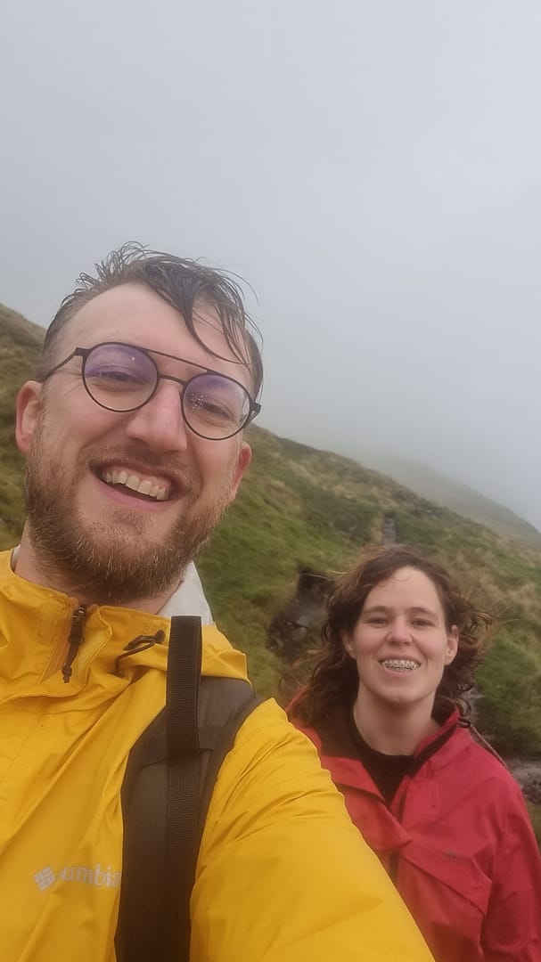 Ongeveer halverwege werd de zichtbaarheid minder en minder. Het regende en er was redelijk wat wind. Een koppel wandelaars keerde terug. Wij twijfelden opnieuw, maar onze idiote trots overwon. Zeker nadat we aan een ander koppel uitlegden dat deze wandeling echt wel een lus maakte. 5 minuten later verloren we hen uit het oog (we zijn niet van de snelsten) en werd de zichtbaarheid nagenoeg nihil. Grotendeels op basis van “dit zal waarschijnlijk de richting zijn” stapten we verder en stegen we nog een kleine 200 meter extra. Het was ploeteren, het regende hard en waren er zeker van: onze overlevingskansen werden kleiner en kleiner (ja, we overdrijven graag). We verloren de weg volledig uit het oog, al kon dat ook gelegen hebben aan het feit dat ik mijn bril afzette omdat de regen en wind heviger en heviger werden. De weg begon zachtjes terug naar beneden te lopen, mijn voeten waren nat en mijn fancy gele regenjas, die was al lang niet meer waterdicht.