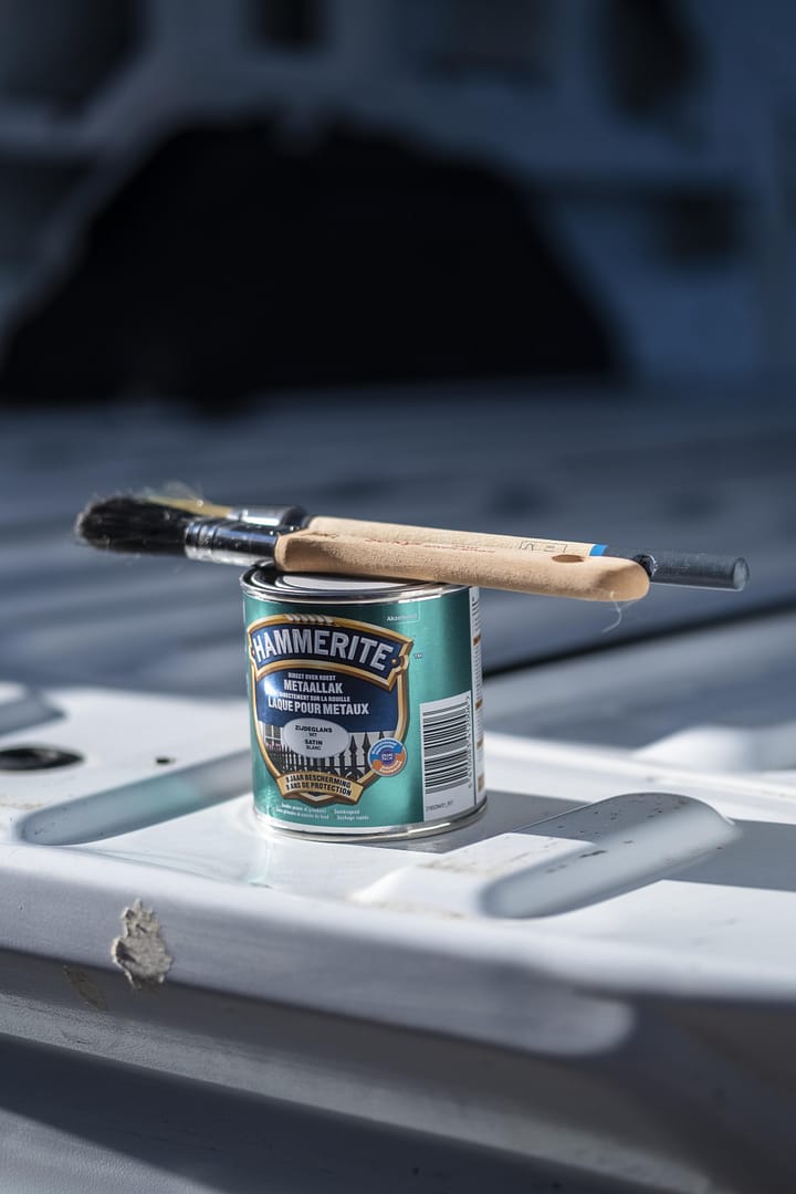 - Nat – detailwerk: hierna zijn we met een doekje in alle kleine hoekjes en spleetjes geweest. Dit hebben we samen met de Hamerite gedaan (zie hieronder, roestbestrijding).