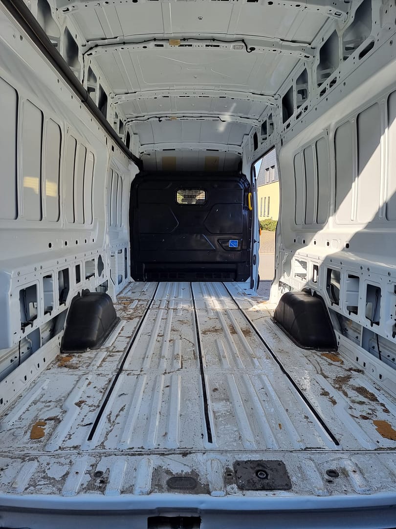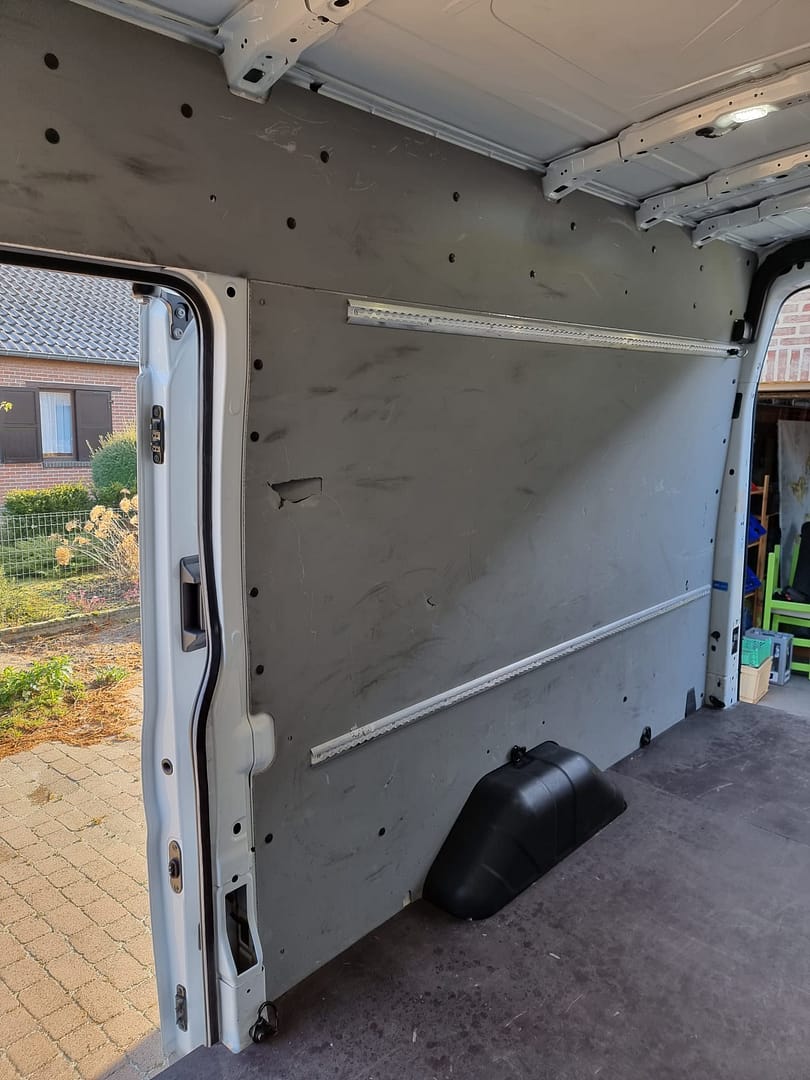 EsteVan blijft namelijk ingeschreven als lichte vracht en daarvoor is een tussenschot verplicht. We hebben ook besloten om dit tussenschot niét te verwijderen, te inspecteren, te kuisen en terug te plaatsen. We hebben dit overwogen, maar bij het verwijderen van de vloeren en wanden bleek de carrosserie in zeer goede staat dus we hebben geen reden om te vermoeden dat we nasty presents zullen vinden langs het tussenschot.