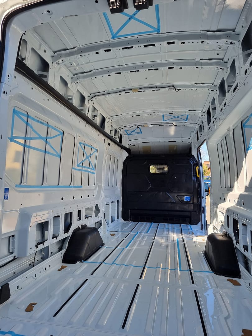 Nu we onze bestelwagen hebben, gaan we deze stap ook nog eens herhalen in de bestelwagen zelf, voordat we aan de slag gaan. Dit geeft ons kans om nog voor het bouwen opnieuw in te grijpen. We zullen het dan ook niet alleen houden bij het afplakken van EsteVan, maar zullen met kartonnen dozen en toebehoren ook echt proberen nabootsen hoe het er allemaal in 3D zal uitzien. Zodra de wanden erin steken gaan we hier in detail aandacht aan besteden, voorlopig hebben we al snel enkele zaken afgetapet voor een snelle eerste reality check: