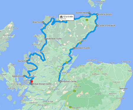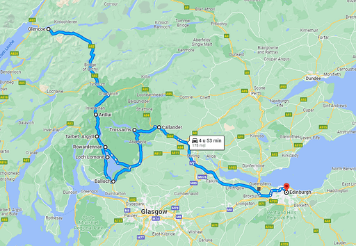 Wat volgt is een overzicht van hoe onze route door het mooie Schotland eruitzag. We delen deze route op op basis van de onderverdeling in onze Lonely Planet gids (die we grotendeels volgden).