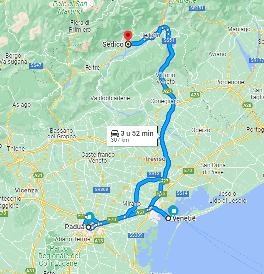 Dag 10: We laten Camping Olympia achter ons en rijden richting Cinque Torri (5 torens). De gidsen waarschuwden ons om op tijd te vertrekken omwille van de beperkte parkeerplaatsen, maar op zich viel dit goed mee (September). Met de stoeltjeslift ga je in no time tot boven (best wat frisser daar!). Boven is een restaurant (heel lekker!) en een openluchtmuseum over de eerste wereldoorlog (en in tussentijd wandel je rond die 5 torens). Na de Dolomieten, stopte EsteVan in Sedico om niet meer verder te geraken en gooiden we de plannen omver. De beschrijving hieronder is onze trip (met verwijzing naar hoe het ‘origineel’ zou moeten gegaan zijn.