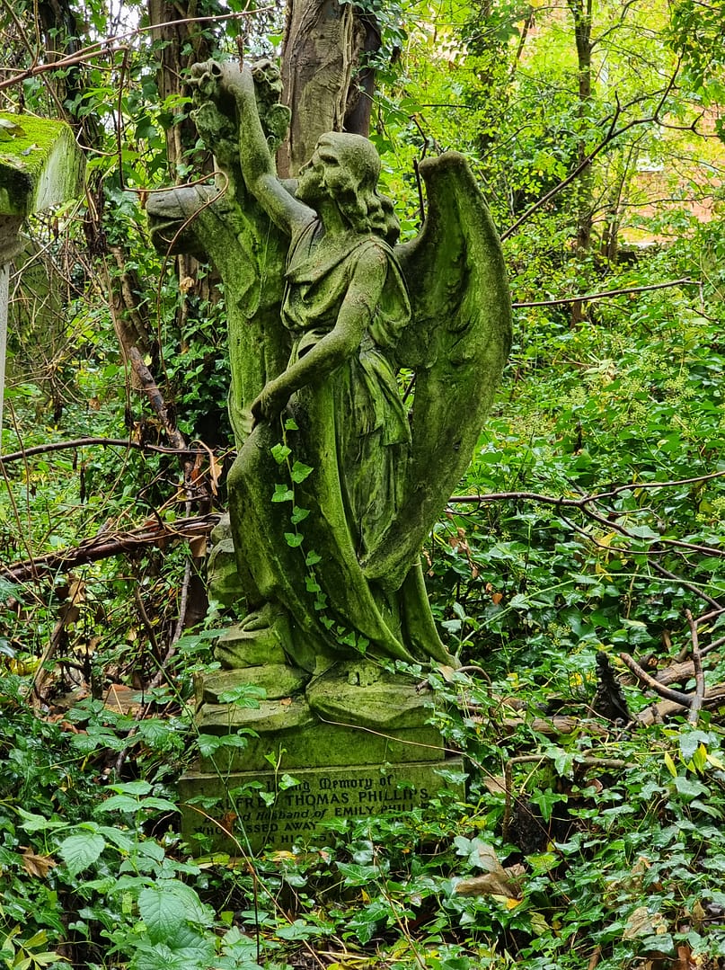 Dat ze het zelf niet meer helemaal weten, zal snel duidelijk worden als je ooit in Abney Park bent. Zodra je twintig centimeter van de hoofdbaan afwijkt, val je van het ene graf over het andere. De begraafplaats is uit gebruik geraakt in de jaren 1970. Sindsdien neemt de natuur het opnieuw over. Er worden nog maar zelden begrafenissen toegelaten en dat geeft het gevoel in een teletijdmachine te stappen.