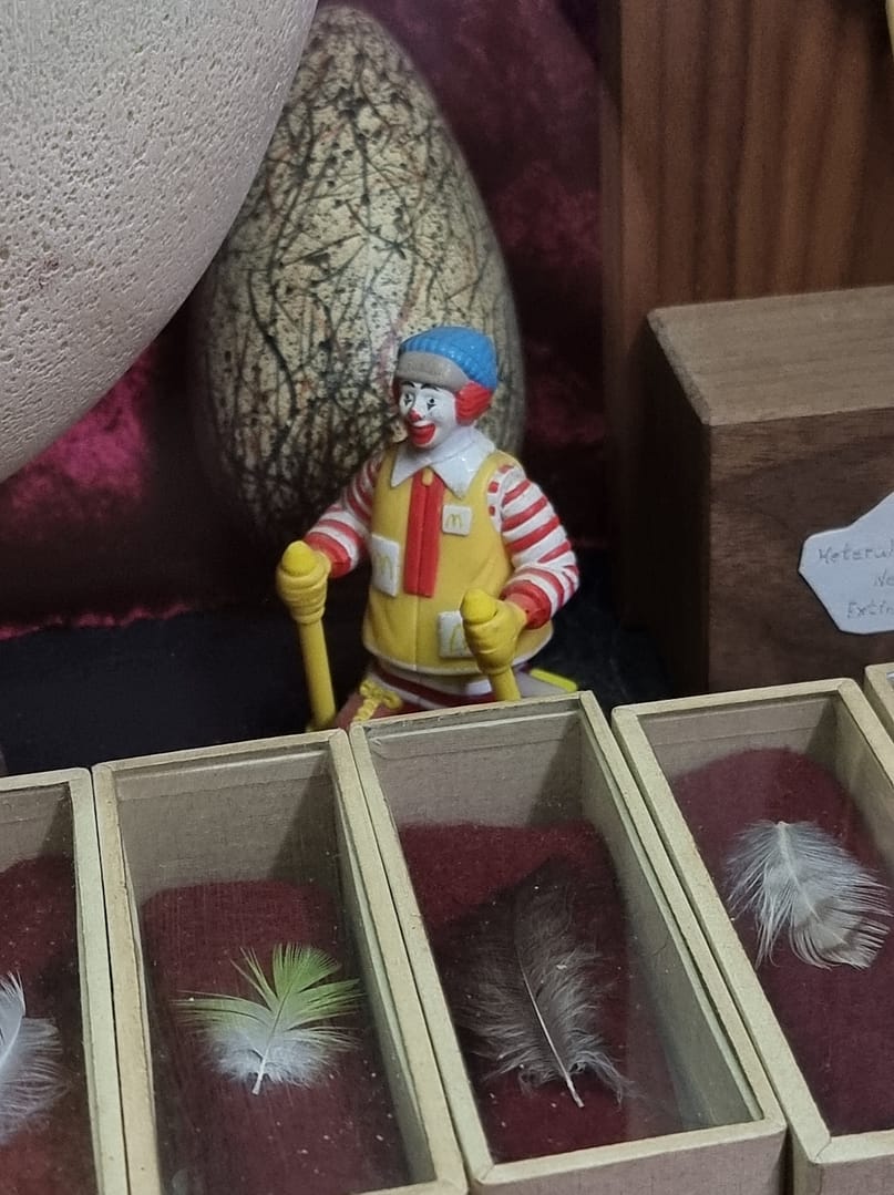 - McDonalds figuurtjes naast tribal art of skeletten van uitgestorven dieren? Check.