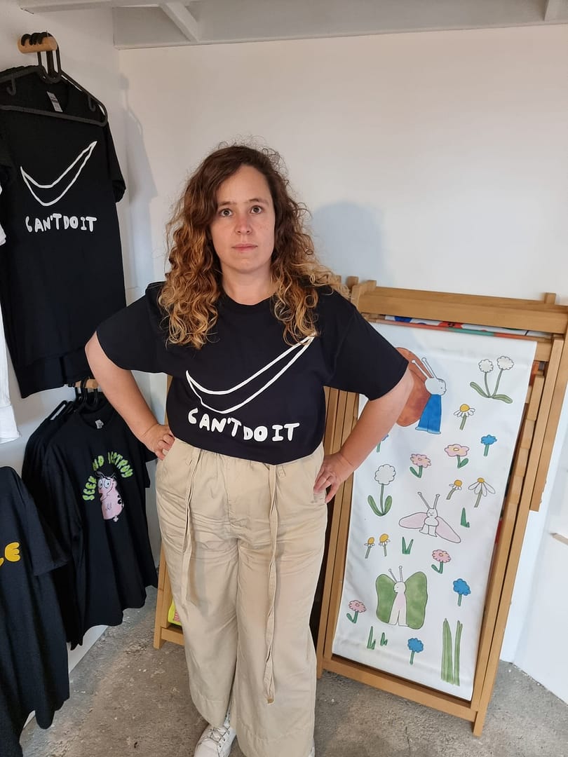 Ja, kijk, ik heb al mijn geld uitgegeven aan T-shirts en prints. De kleine kunstenaar steunen heet dat dan.