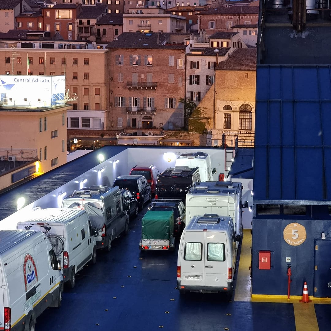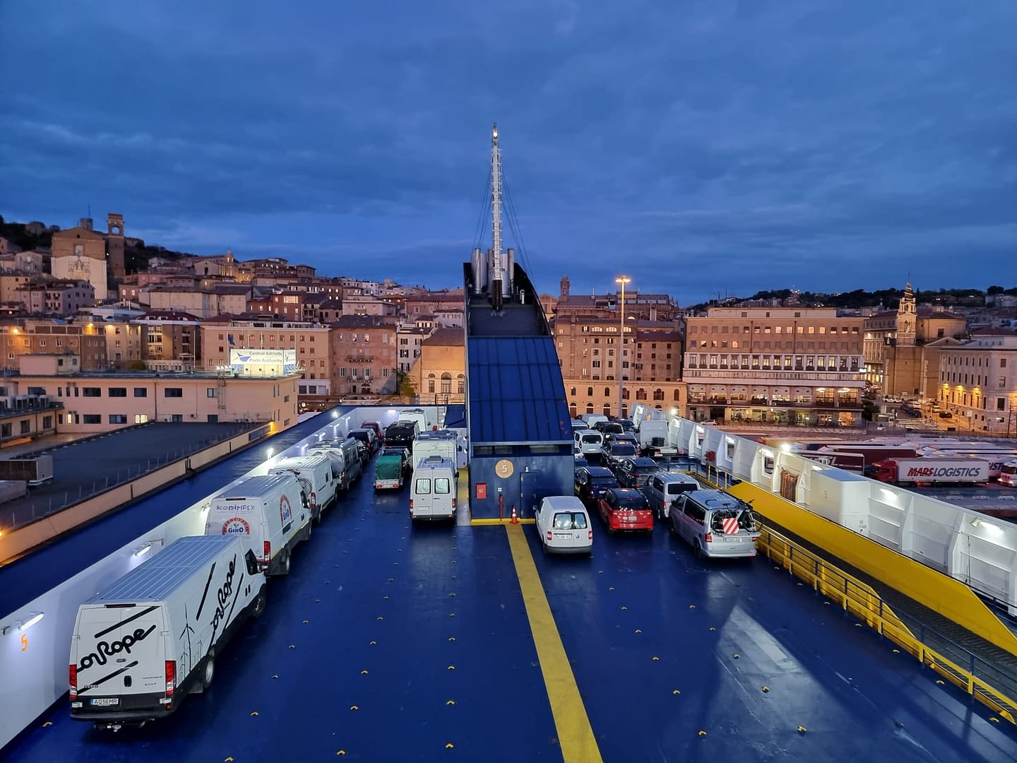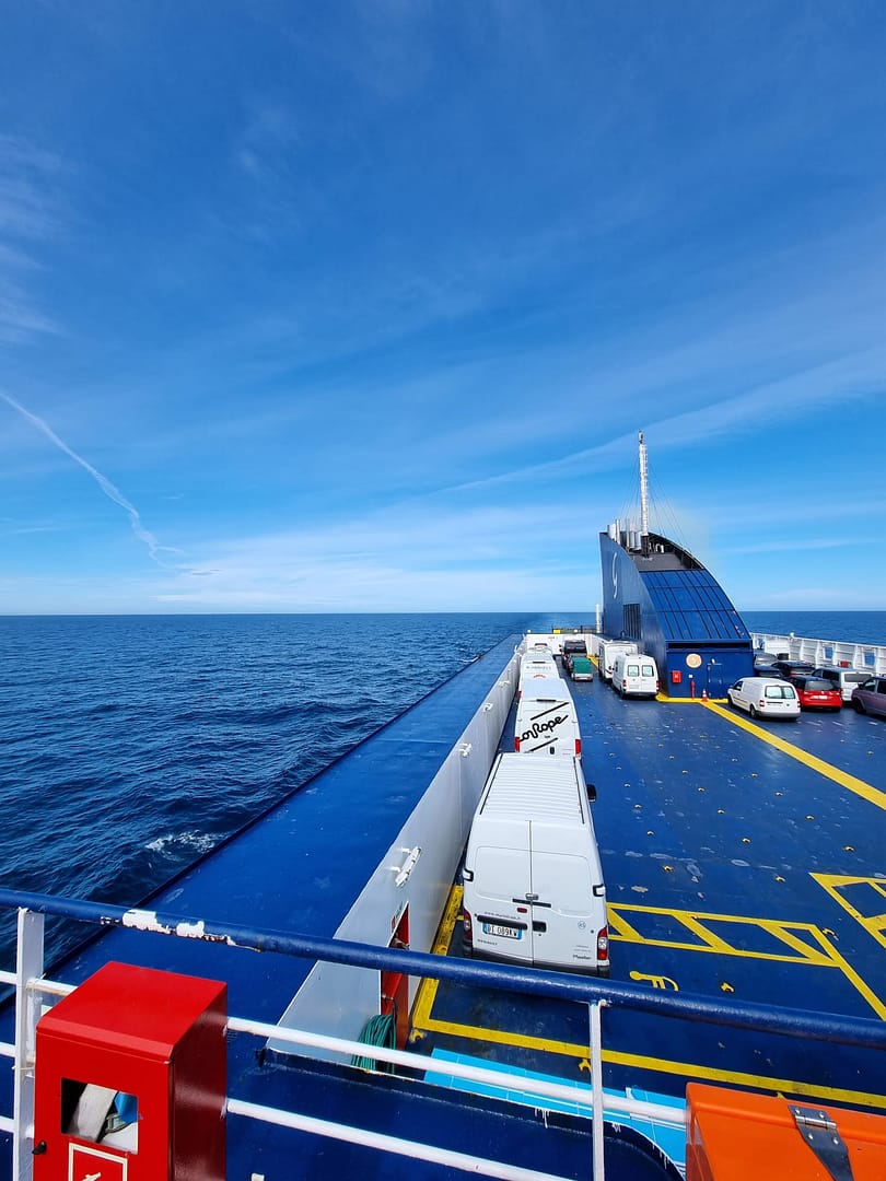 Zet je mobiel internet af eens de ferry vertrekt. Roaming is mooi, maar van zodra je vertrekt gelden die regels niet meer. Dat zal je merken aan de notificaties die je provider je stuurt. “Welkom in Italië (we waren daar al een week nota bene). Data kost hier 16,94€/MB. Fijne reis”. Je zal zo maar eens een uurtje of 3 naar je favoriete reels op Instagram kijken. Er was betalende Wifi aanwezig aan boord, maar daar maakten we geen gebruik van.