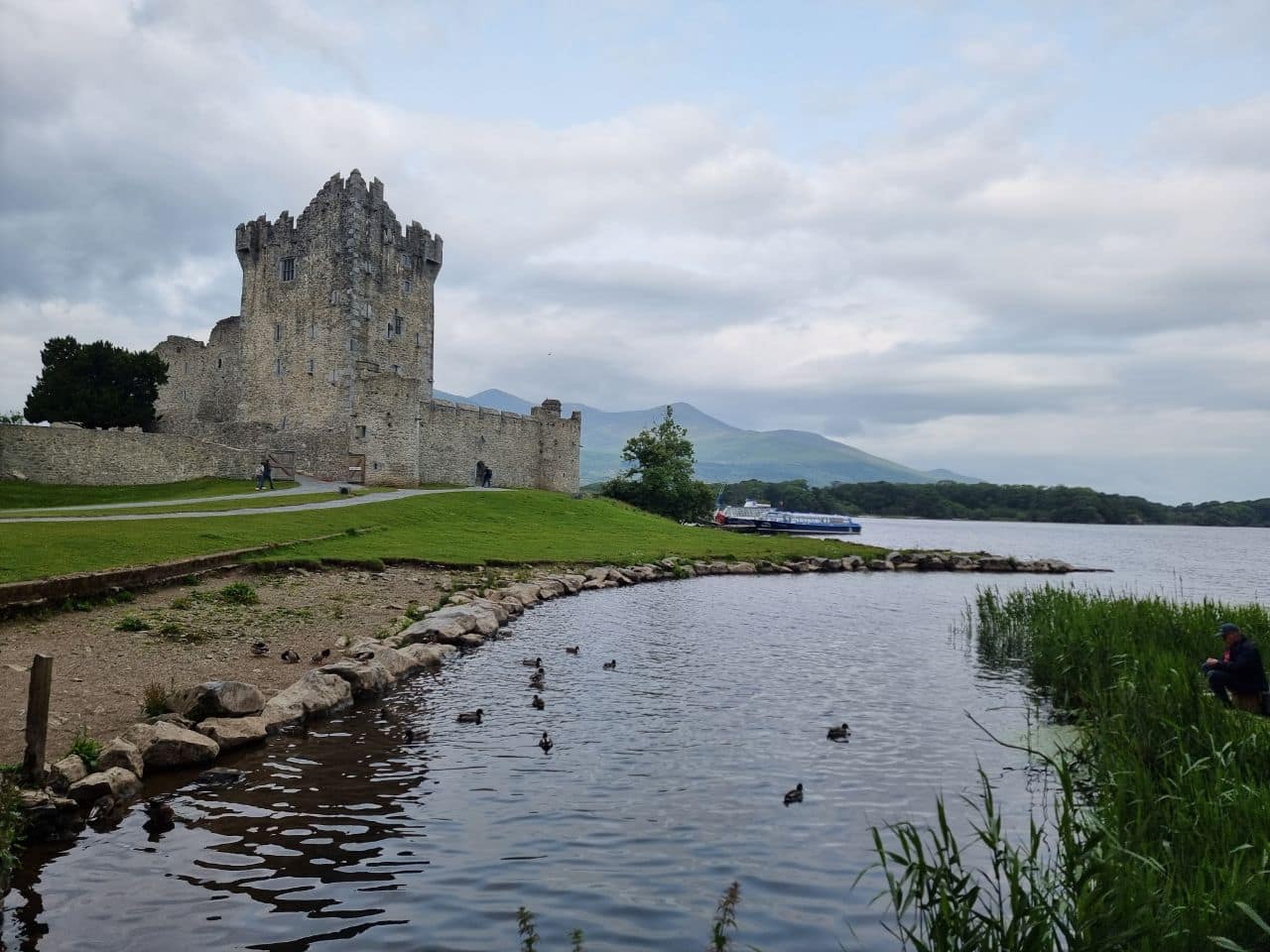 Killarney is de officieuze startplaats van de Ring of Kerry. Daar wandelen we rond Ross Castle (geen bezoekje hier). Een logische volgende stap is dan Gap of Dunloe, maar dat is moeilijk bereikbaar voor campers, dus skippen we deze. Volgende stops zijn Rossbeigh Beach (geen camperparking!) en Cahersiveen (ringforten en Ballycarbery Castle).